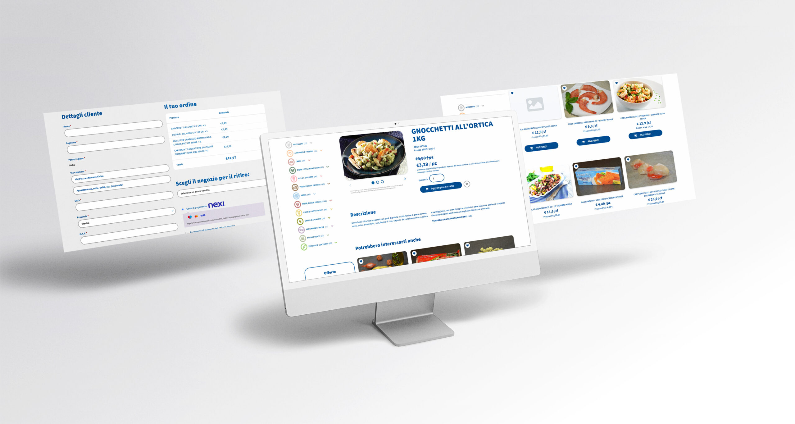 Dopo una prima analisi iniziale e le richieste del cliente, la gestione dei prodotti si interfaccia con il gestionale del cliente e aggiorna in automatico la parte di prodotto e giacenza, gestisce disponibilità per singolo punto vendita, articoli con peso variabile e area riservata per singolo punto vendita.