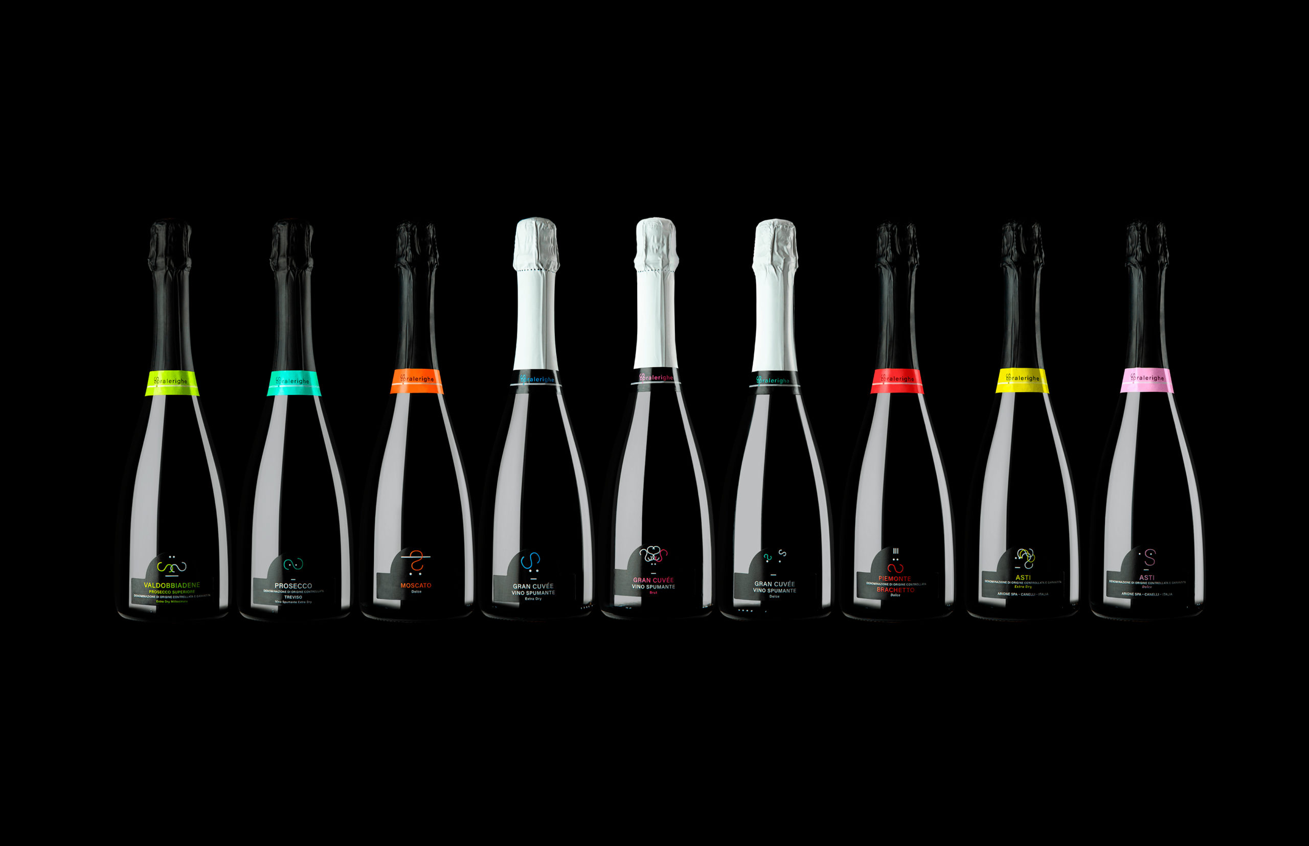 Le tipologie di vino sono una selezione di bollicine secche e dolci che saranno unificate in un’unica nuova bottiglia. Il concept creativo vestirà trasversalmente la linea conferendo coerenza e rafforzando la Brand Awareness.