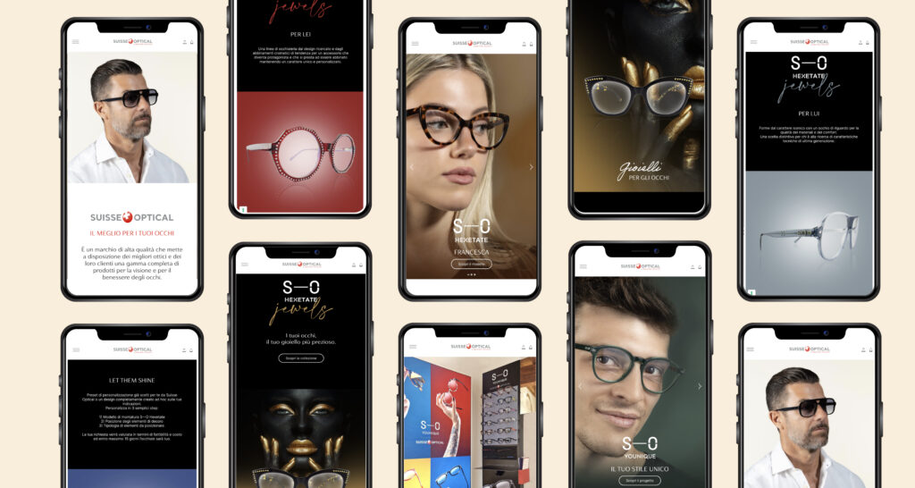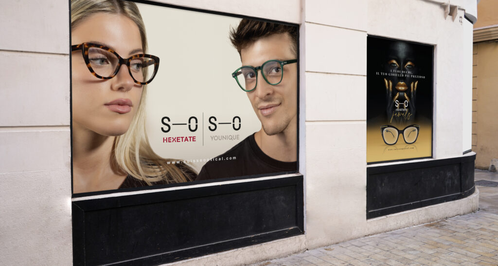 Suisse Optical mettendoci alla guida del progetto mirava alla creazione di un concept visivo le cui declinazioni dovessero agire nel posizionare il Brand in uno scenario di fascia medio-alta.